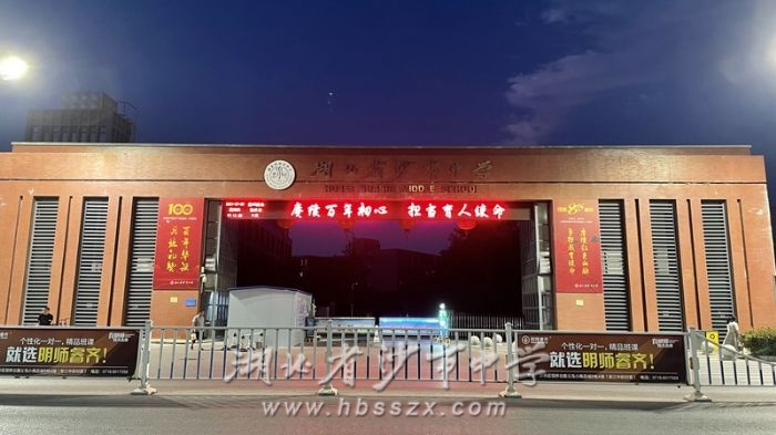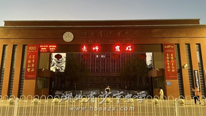 根據上級教育主管部門荊州市教育局的統一安排,沙市中學將于9月9日、10日晚20:00-21:00在學校正門(東門)、側門(南門)門樓的大型 LED 文字顯示屏和學校藝術報告廳旁的 LED 全彩屏上滾動顯示內容為“賡續百年初心,擔當育人使命”"老師,您好!"“教師節快樂!”的字幕和視頻,以此形式為教師"亮燈",并慶祝第37個教師節的到來。