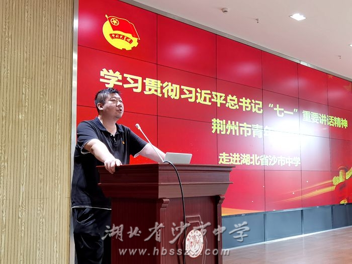 按照荊州市委關(guān)于開展專題學(xué)習(xí)活動(dòng)的工作要求,學(xué)習(xí)貫徹習(xí)近平總書記“七一”重要講話精神,我校團(tuán)委于2021年9月24日下午第三節(jié)課,在綜合樓二樓會(huì)議廳組織高一年級(jí)學(xué)生參加了本次宣講會(huì)。大會(huì)由我校團(tuán)委書記張珺主持,他向同學(xué)們強(qiáng)調(diào)了本次宣講會(huì)的重要性和必要性,并隆重介紹了本次宣講會(huì)的主講人尹文娟老師。