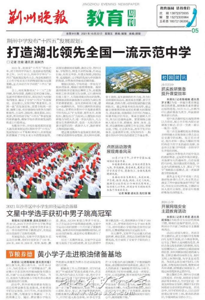 《荊州晚報》2021年10月22日報道我校舉行田徑運動會