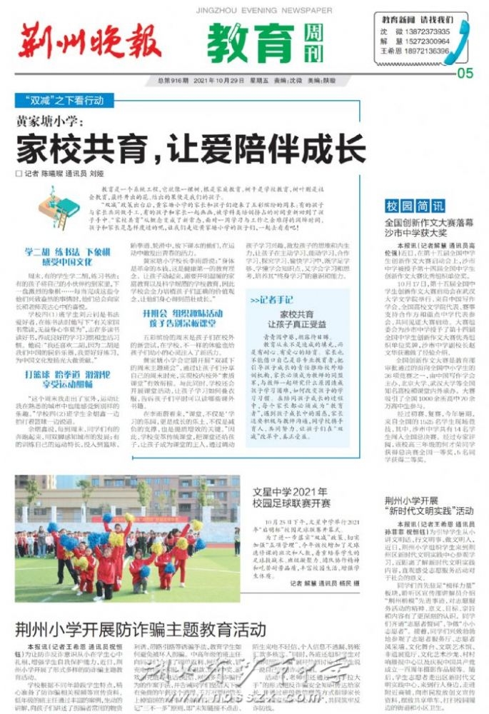 《荊州晚報(bào)》2021年10月29日?qǐng)?bào)道我校在全國(guó)創(chuàng)新作文大賽中奪得大獎(jiǎng)