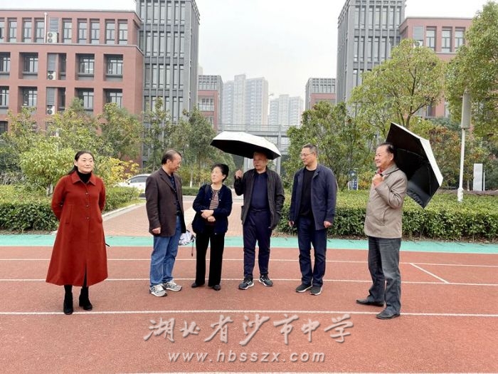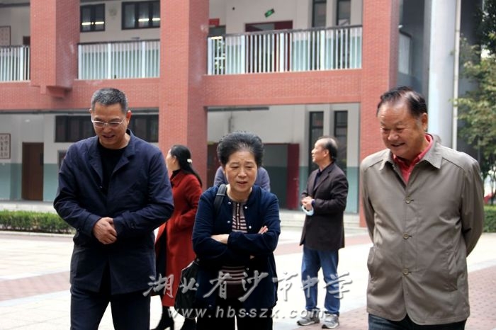 在熊禮才的陪同下,幸正榮一行先后參觀了習坎樓、綜合樓、教學樓、運動場等,每到一處,大家都為新校區的現代化建設發出由衷的贊美,感嘆著學校的變化之大。在參觀校園的過程中,幸正榮一行偶遇多位沙市中學的老熟人同事,老師們十分熱情地前來與幸正榮握手、擁抱,彼此之間倍感親切。