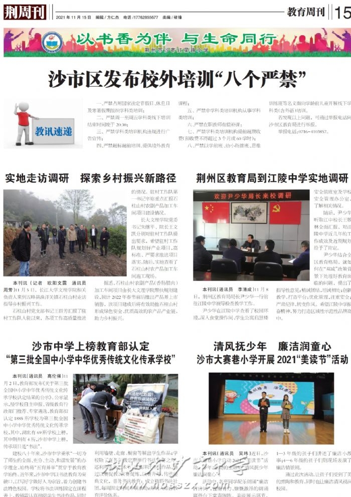 《荊周刊》2021年11月15日報道我校上榜教育部認定的"第三批全國中小學中華優秀傳統文化傳承學校"