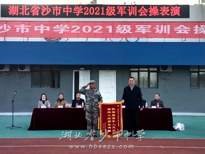 最后,我校黨委書記、校長熊禮才代表學校為教官贈送了錦旗,并鄭重宣布了2021級新生軍訓會操表演正式結束!