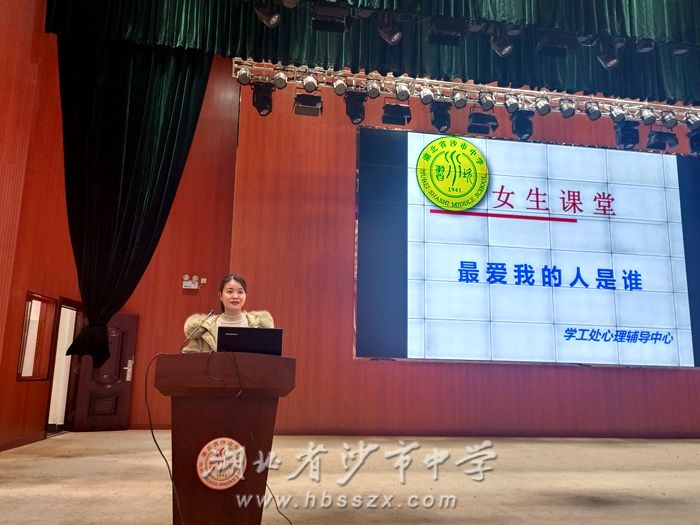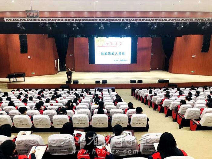 為進一步落實教育部關于中小學心理健康教育的相關要求,引領我校高中女生形成健康的心理和健全的人格,2021年12月9日晚上六點,我校學生成長中心在藝術報告廳舉行了一場針對高一年級的女生課堂講座。本次講座由我校團委副書記黃嘉懿主持,荊州市生涯規劃名師工作室主持人、我校資深心理輔導老師劉春擔任主講。