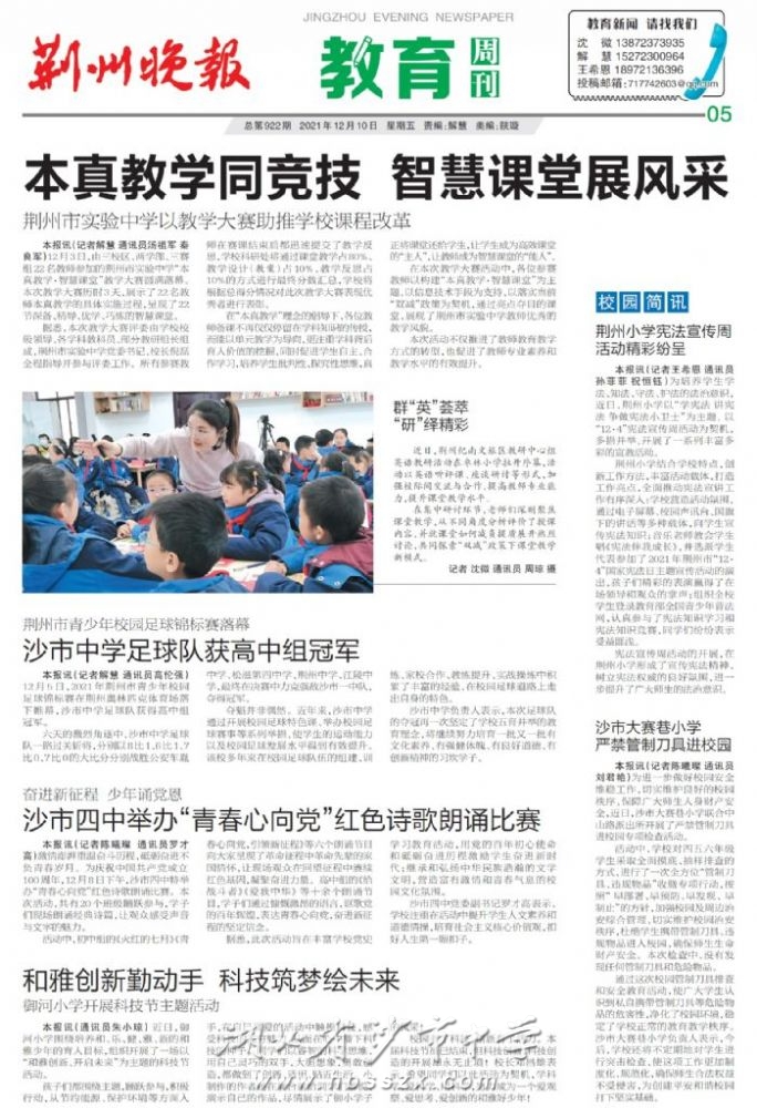 《荊州晚報》2021年12月10日報道我校獲得荊州市青少年校園足球錦標賽高中組冠軍