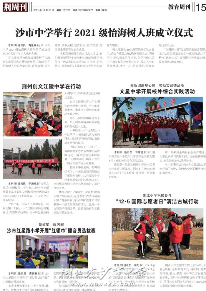 《荊周刊》2021年12月13日報道我校舉行2021級怡海樹人班成立儀式