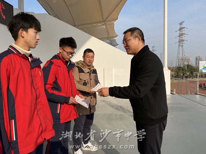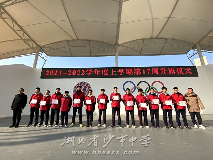 2021年12月20日上午九點半,在學校運動場,我校舉行了12月“感動校園人物”頒獎儀式。頒獎儀式由2014班的楊天澤和2103班的伍思妍兩位同學主持,我校黨委書記、校長熊禮才為獲獎師生頒獎,本次獲得“感動校園人物”獎的是我校足球總教練胡明老師和他帶領的包括張永康、王鉉榮、胡哲軒等20名同學在內的沙市中學足球隊。