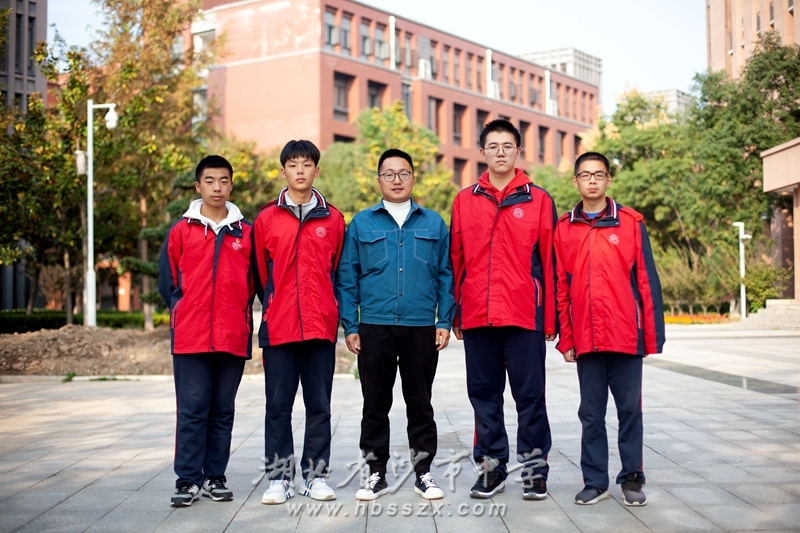 沙市中學化學競賽教練杜景泉老師與獲得省賽區一等獎的四名學生合影