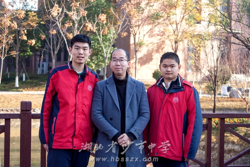 沙市中學物理競賽教練余小路與兩名獲獎學生合影