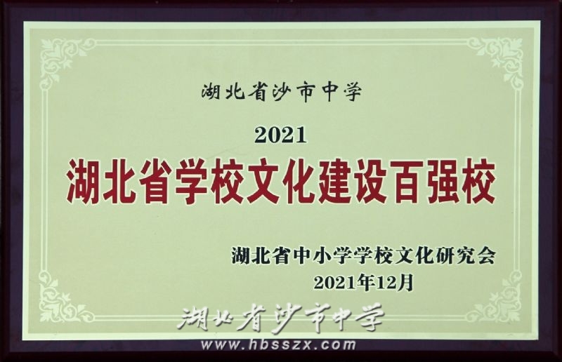 沙市中學榮獲"2021湖北省學校文化建設百強校"稱號