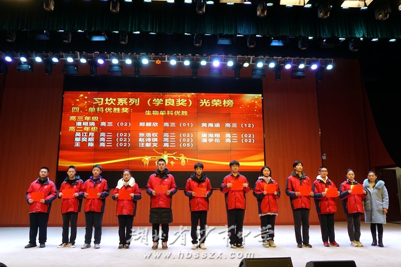 在學校黨委書記、校長熊禮才的帶領下,沙市中學校級領導先后上臺為獲獎學生頒發了劉創獎學金、荊圃獎學金、學良獎學金、王川獎學金、“813”獎學金、“顧正自強”獎學金等習坎系列獎。 這些獎學金有的是從沙市中學走出的杰出校友捐資設立,有的是由知名企業家或社會賢達捐資設立,獎勵勤奮學習、刻苦鉆研、品學兼優、學有所長的學生。據統計,本年度習坎系列獎學金授獎學生達 151 人次,另有8個微電影劇組和3個節目組獲獎。