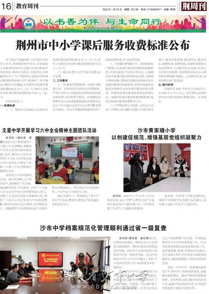 《荊周刊》2022年1月24日報道我校檔案規范化管理通過省一級復查