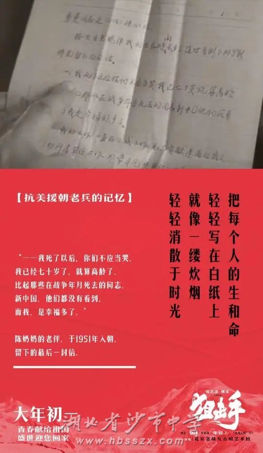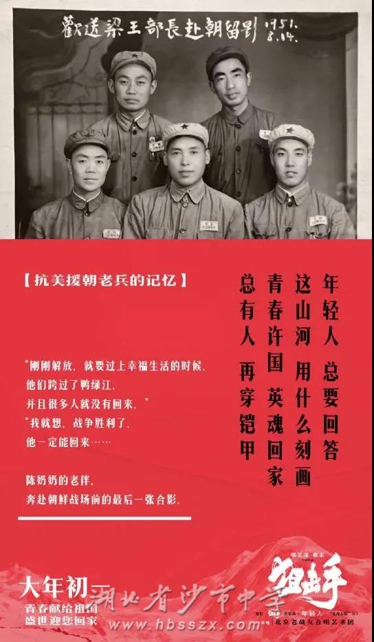 英雄守護山河,愛國精魂永在,冷槍冷炮無懼強敵,忠心鐵骨只為奉獻。由張藝謀、張末導演執導,沙市中學校友、北京大學藝術學院教授陳宇擔任原著·編劇的電影《狙擊手》大年初一全國上映,目前春節檔豆瓣評分第一。