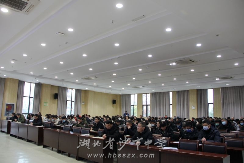 大會(huì)現(xiàn)場(chǎng) 2月12日上午9:00,沙市中學(xué)210余名教職員工齊聚綜合樓二樓會(huì)議室,召開2021至2022學(xué)年度下學(xué)期第一次全校教職工大會(huì)。會(huì)議由黨委委員、工會(huì)主席胡直主持。