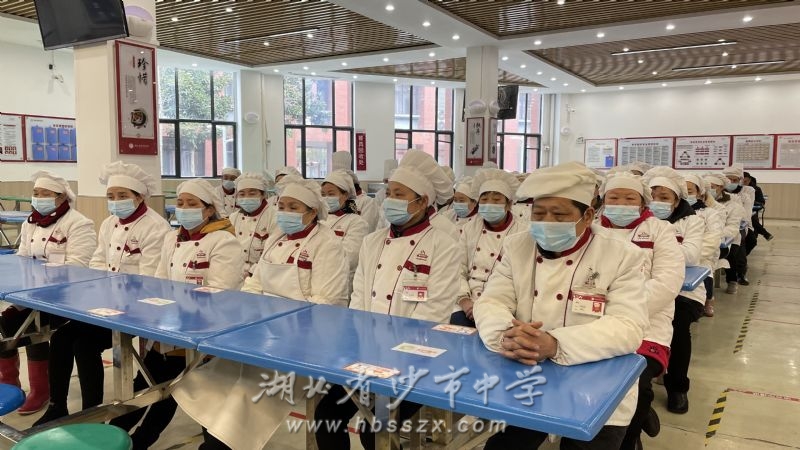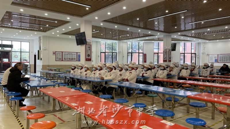 為了提高食堂從業人員的食品安全意識和責任意識,2月22日下午3時,沙市中學總務處在學生食堂一樓開展了食品安全衛生知識培訓。沙市中學工會主席胡直、總務處主任李德植、副主任孫旭波、食堂經理黃大源和食堂全體員工參加培訓會,會議由李德植主持。