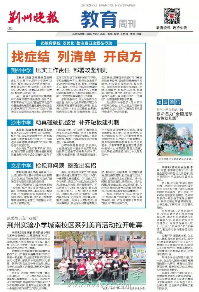 《荊州晚報》2022年2月25日報道我校召開"雙優(yōu)化"整治百日攻堅動員大會