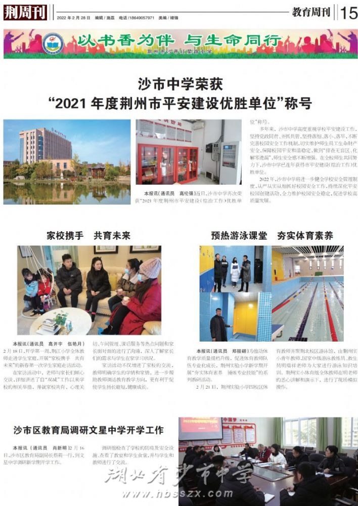 《荊周刊》2022年2月28日報道我校榮獲"2021年度荊州市平安建設優勝單位"稱號
