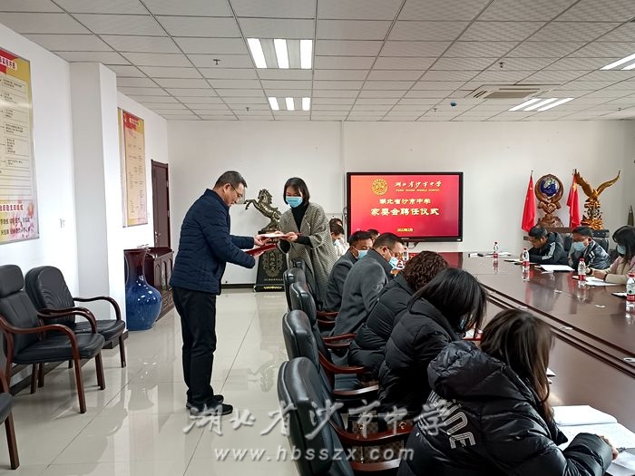 黨委書記、校長熊禮才給家委會委員頒發聘書 為進一步貫徹立德樹人根本要求,落實沙市中學“雙優化”整治百日攻堅行動實施方案,推進“三全育人”教育機制,2月26日下午,沙市中學在綜合樓七樓會議室舉行了家長座談會。座談會由學生成長中心主任李雪冰主持,黨委書記、校長熊禮才,黨委委員、副校長徐善慧以及相關年級組長、班主任均出席本次活動。