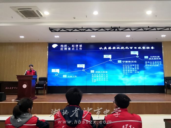 最后,團(tuán)委書記張珺老師帶領(lǐng)全體學(xué)生干部學(xué)習(xí)了《湖北省沙市中學(xué)“雙優(yōu)化”整治百日攻堅行動實施方案》,他指出學(xué)生干部應(yīng)當(dāng)明確自身定位,發(fā)揮主人翁意識,明確團(tuán)學(xué)會的宗旨,樹立服務(wù)精神和紀(jì)律意識,希望大家能夠起到“領(lǐng)頭羊”的作用,多渠道地了解和收集同學(xué)們的意見,凝聚集體力量,共謀學(xué)校發(fā)展。