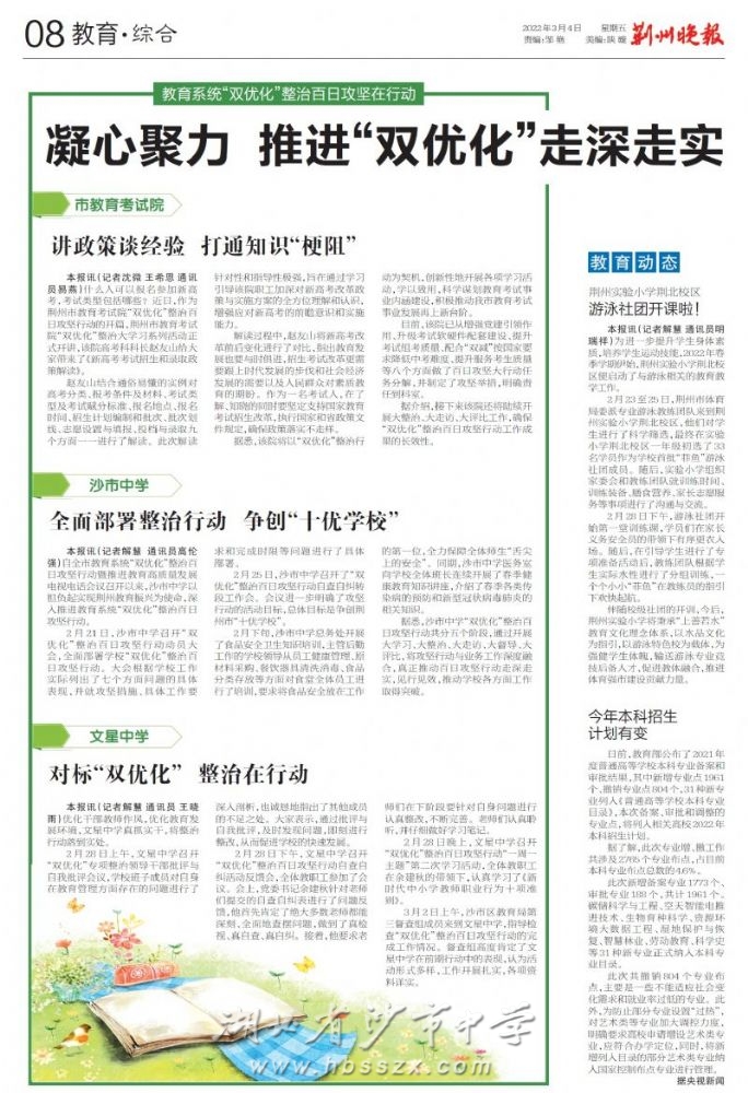 《荊州晚報》2022年3月4日報道我校推動"雙優化"走深走實