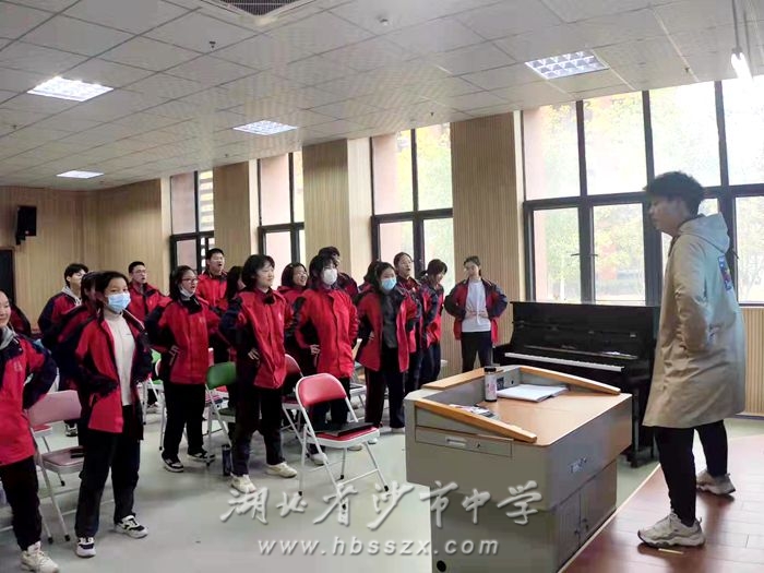 習(xí)坎藝術(shù)團(tuán)合唱隊(duì)在張盼老師的帶領(lǐng)下進(jìn)行發(fā)聲練習(xí)