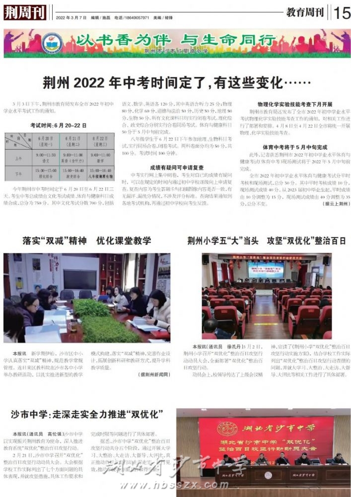 《荊周刊》2022年3月7日報道我校推動"雙優化"走深走實