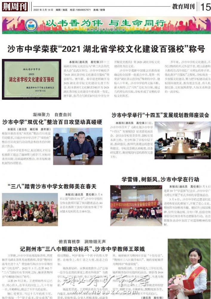 《荊周刊》2022年3月14日?qǐng)?bào)道我校"雙優(yōu)化"整治百日攻堅(jiān)動(dòng)真碰硬等六事