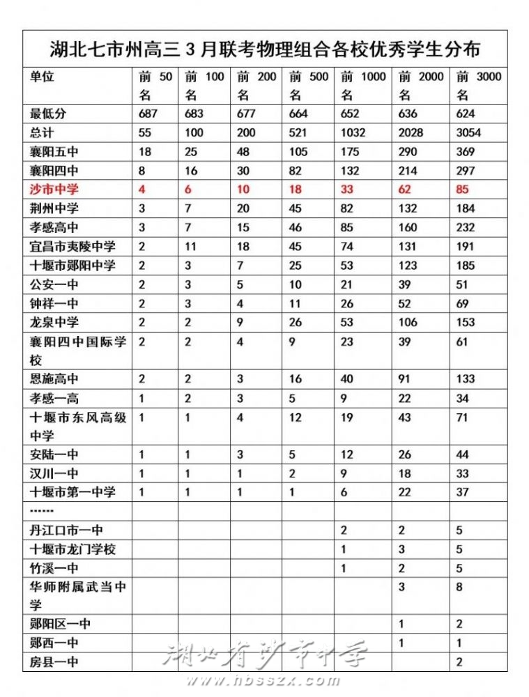 湖北省七市州高三3月聯(lián)考優(yōu)生分布