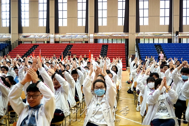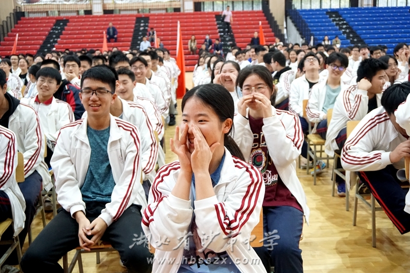 報告會氣氛始終熱烈,在羅老師的帶動下,同學們或高舉雙手,為夢想吶喊;或會心一笑,煩惱頓除;或閉目冥想,感恩師長教誨;部分學生甚至跑上臺,面對全體師生,將心中對北大、清華等名校的追求吶喊而出。