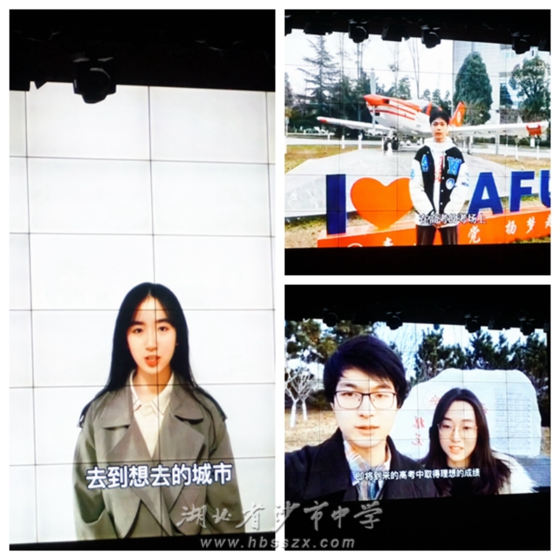 在各地求學的師兄師姐通過視頻為高三學子送上了暖心的祝福與鼓勵,祝愿2022屆高三同學們高考加油,乘風破浪,揚帆起航,祝愿2022年沙市中學高考必勝,再創輝煌。