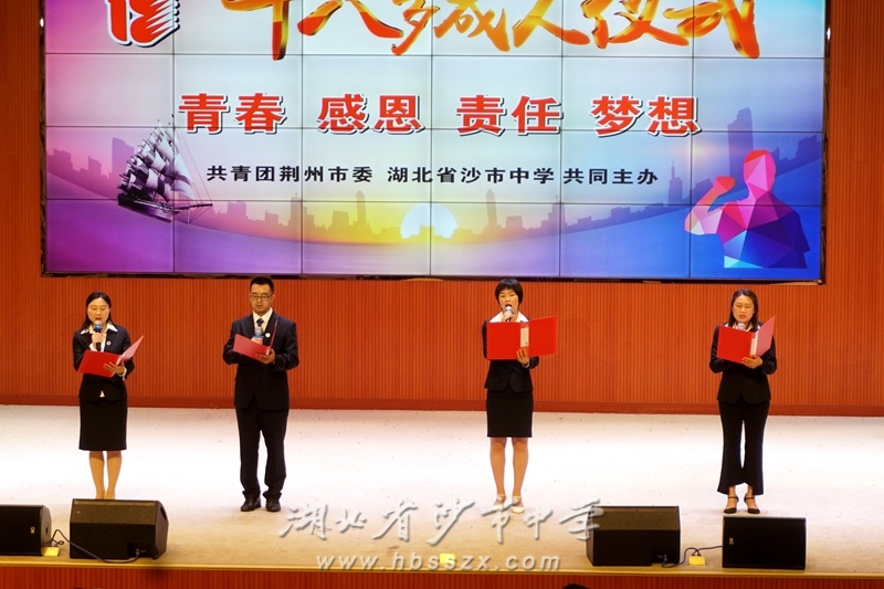 5月4日,沙市中學在藝術報告廳隆重舉行了以“成長、感恩、責任、夢想”為主題的2019級高三成人儀式,學校領導、家長代表和高三年級全體師生參加了慶典。