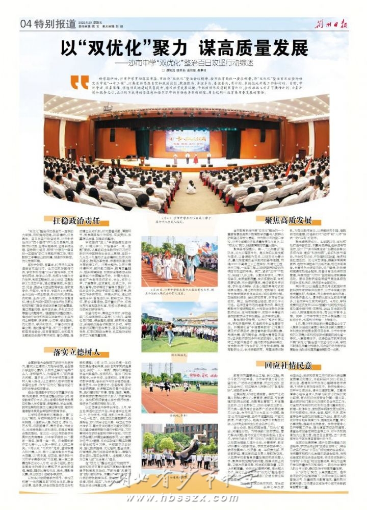 《荊州日?qǐng)?bào)》2022年5月20日專版報(bào)道我校"雙優(yōu)化"整治工作