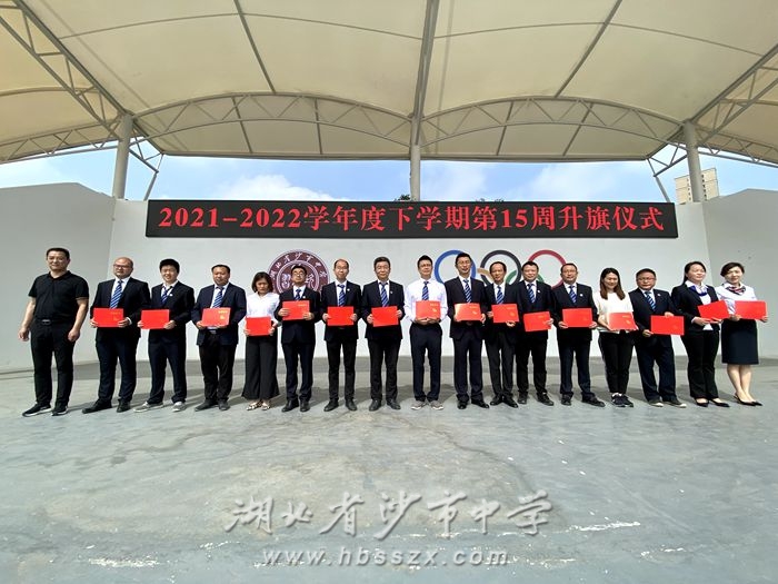 獲獎教師合影 2022年5月23日上午九點半,沙市中學舉行了5月“感動校園人物”頒獎儀式。頒獎儀式由2004胡歆苑和2014楊天澤兩位同學主持,我校黨委書記、校長熊禮才為獲獎教師頒獎,本次獲得“感動校園人物”獎的是2019級高三全體班主任,他們是:潘磊、毛悅、王新嬌、熊華、林智、胡振良、冷勁松、謝莫波、吳俊威、王曉巍、葉世安、余小路、冀李、楊潔、魏遵平、陳雄、汪小明。