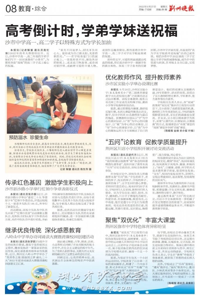 《荊州晚報》2022年5月27日報道我校高一、高二學子為學長加油