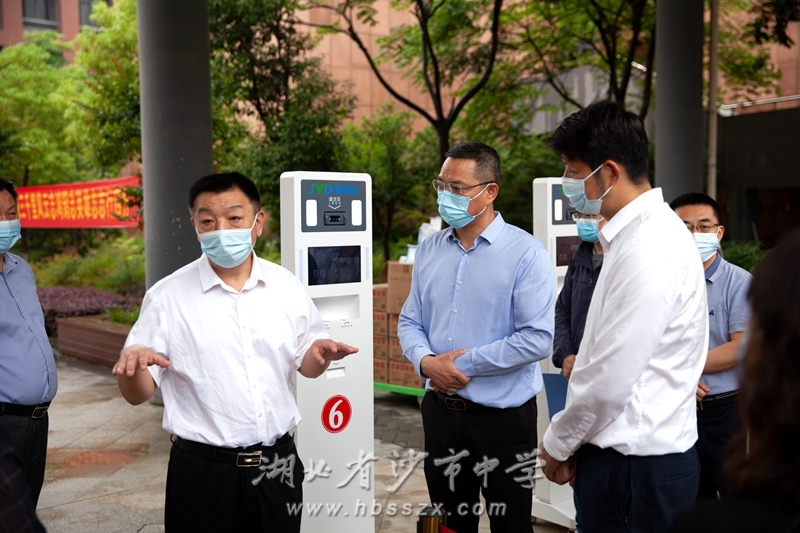 在沙市中學考點,周啟紅一行檢查了學校東門測溫系統后進入校園,循著考生進入考場的路線,現場察看了考點入校體溫檢測、身份驗證設備,檢查并測試了考場信號屏蔽、考試播音、考點視頻監控等設施設備運行等情況,深入高考考務辦公室仔細咨詢相關準備情況。沙市中學黨委書記、校長熊禮才匯報了學校在疫情防控、考務組織、設施設備、應急預案和人員安排等方面的準備工作。