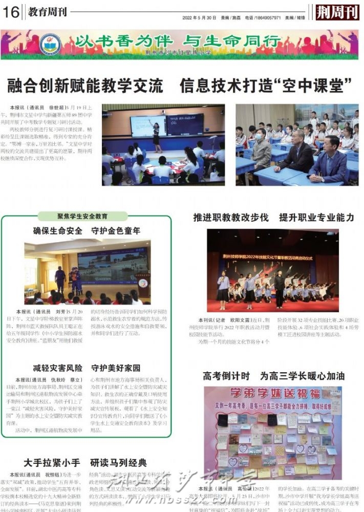 《荊周刊》2022年5月30日報道我校高一、高二學(xué)生為學(xué)長暖心加油