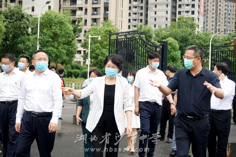 肖菊華一行臨行前囑托學(xué)校領(lǐng)導(dǎo) 6月1日,距離2022年高考還有5天,副省長(zhǎng)肖菊華來到湖北省沙市中學(xué)調(diào)研高考準(zhǔn)備情況,荊州市市委書記吳錦、省政府副秘書長(zhǎng)丁輝、省教育廳廳長(zhǎng)周靜、市政府副市長(zhǎng)嚴(yán)紅參加調(diào)研。