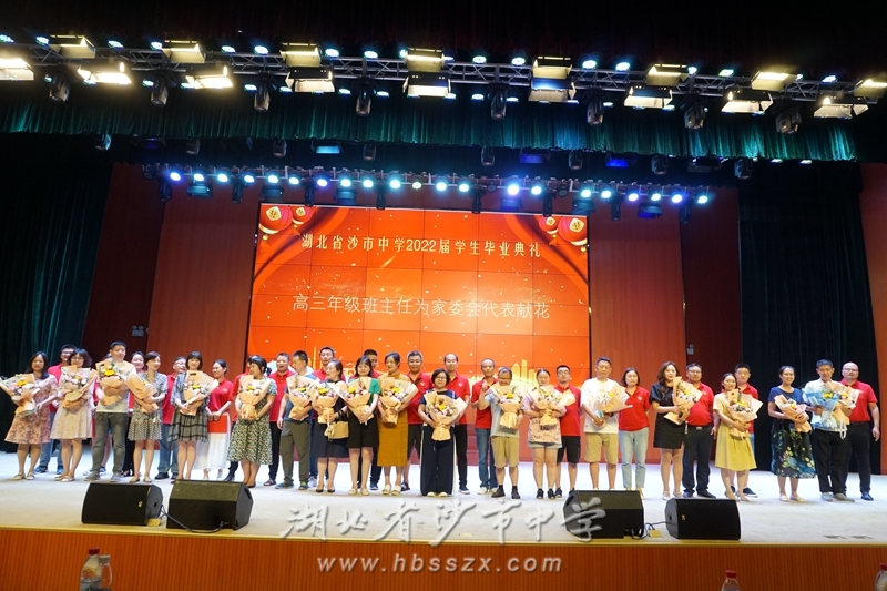 高三年級班主任向家委會代表獻花,感謝他們三年來對學校教育事業的支持。