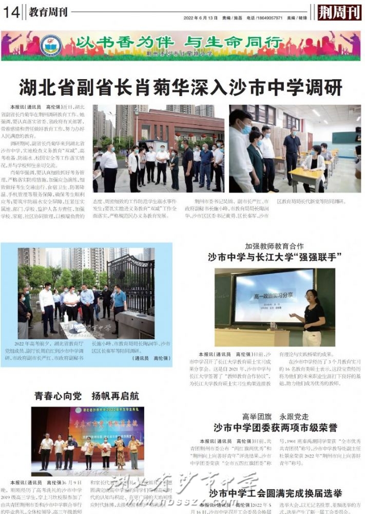 《荊周刊》2022年6月13日報道肖菊華副省長來我校調研等六件大事