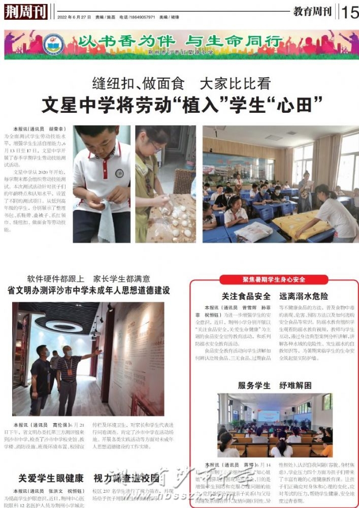 《荊周刊》2022年6月27日報道省文明辦測評我校未成年人思想道德建設