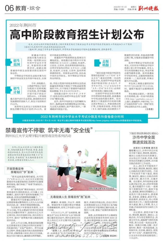 《荊州晚報》2022年7月1日報道我校全面推進"下基層"實踐活動