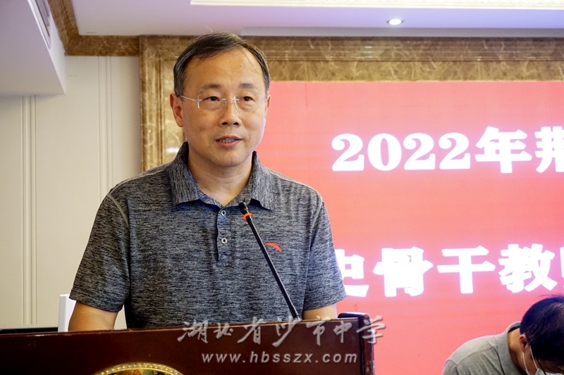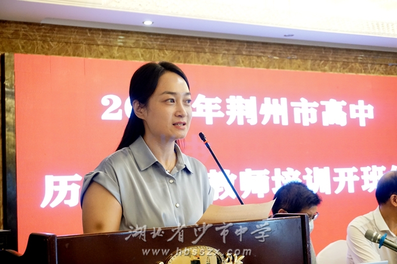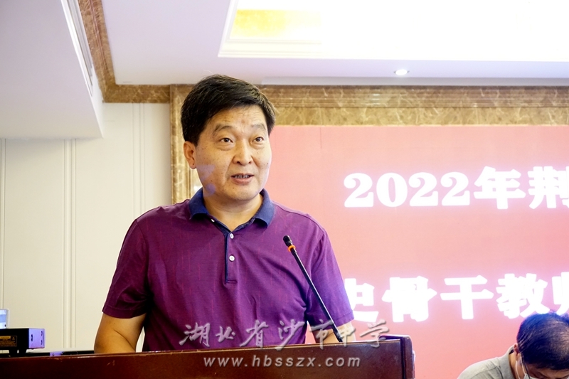 荊州市教科院副院長陳子俊發言。他說,面臨不斷深化的高考內容改革,歷史作為高考首選學科之一,歷史學科教師要思考并回答:一、如何落實立德樹人根本任務,二、如何發展學生的核心素養,三、如何使“雙減”目標落實落地,四、怎樣加強教考銜接。他希望學員帶著問題去學習、去思考、去交流,專心學習,學有所成。