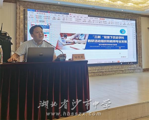 王曉寧老師做報告 8月20日武漢市教研室兩位老師伏森泉和陸優君聯袂來到培訓會場。伏老師老師作了《新高考命題特點和趨勢》的主題報告,陸優君結合自己個人的專業成長軌跡,對新課改背景下歷史學科教研活動和教師專業發展提供了一些新思路、新方法。這兩個報告讓老師們對新高考有了更明確和深入的認識 ,同時也給老師們如何開展教研創新以及促進個人專業發展提供了方向。