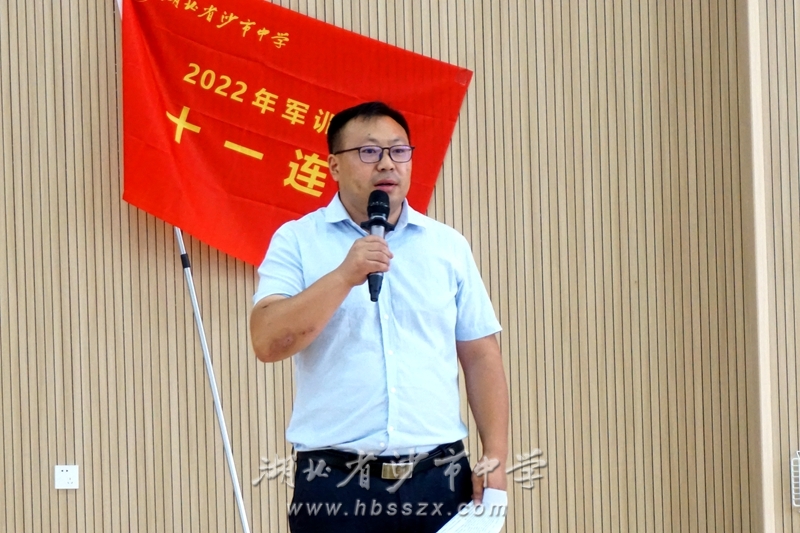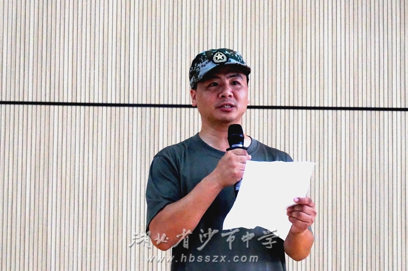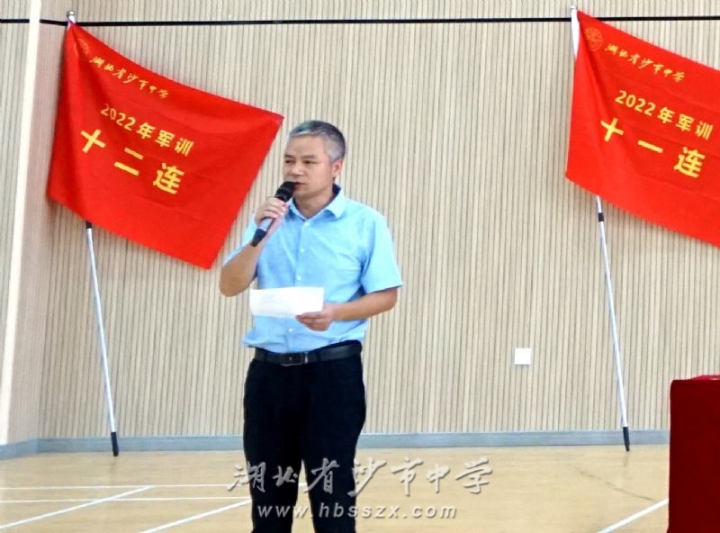 副校長徐善慧在致辭中,歡迎2022級新同學來到具有“學府氣質,園林風格”的沙市中學,介紹了沙市中學習坎文化和輝煌成就。他分析了進入21世紀后的國際大事和各種危機,指出,同學們不是生活在一個和平的世界,只是有幸生活在一個和平的中國。據此,他強調了軍訓的意義及相關要求,希望同學們用努力宣告自己的到來,用奮斗展現自己的青春風采。