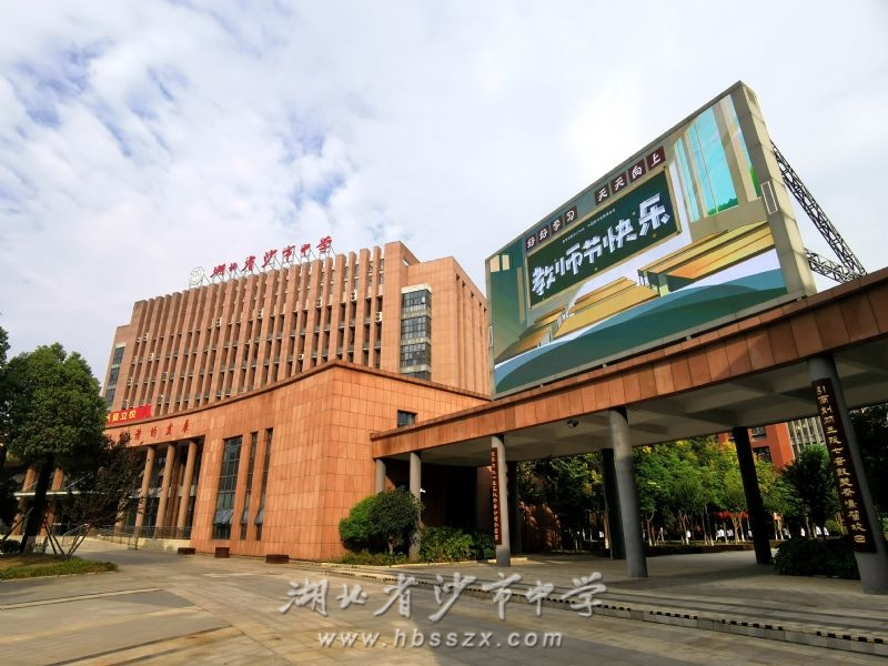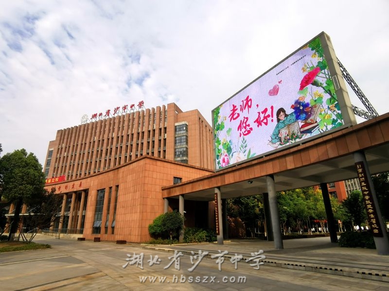 根據(jù)上級(jí)教育主管部門荊州市教育局的統(tǒng)一安排并結(jié)合本單位實(shí)際,沙市中學(xué)將于9月9日、10日、11日連續(xù)三晚的黃金時(shí)間(19:00-22:00)在學(xué)校主體建筑至善樓(綜合樓)旁的大型 LED 全彩屏上播放內(nèi)容為“熱烈慶祝第三十八個(gè)教師節(jié)”、“迎接黨的二十大,培根鑄魂育新人”、“老師,您好!”、“老師,您辛苦了!”、“教師節(jié)快樂!”等的海報(bào)圖片,同時(shí)全天在學(xué)校東門門樓、南門門樓、體育場(chǎng)主席臺(tái)等處的大型 LED 文字屏上滾動(dòng)顯示上述文字內(nèi)容。學(xué)校期望以此形式為教師"亮燈",隆重慶祝第三十八個(gè)教師節(jié)的到來。