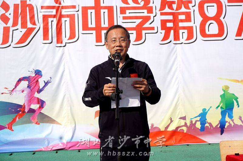 沙市中學(xué)黨委副書記張志禮宣布運(yùn)動(dòng)會(huì)開(kāi)幕