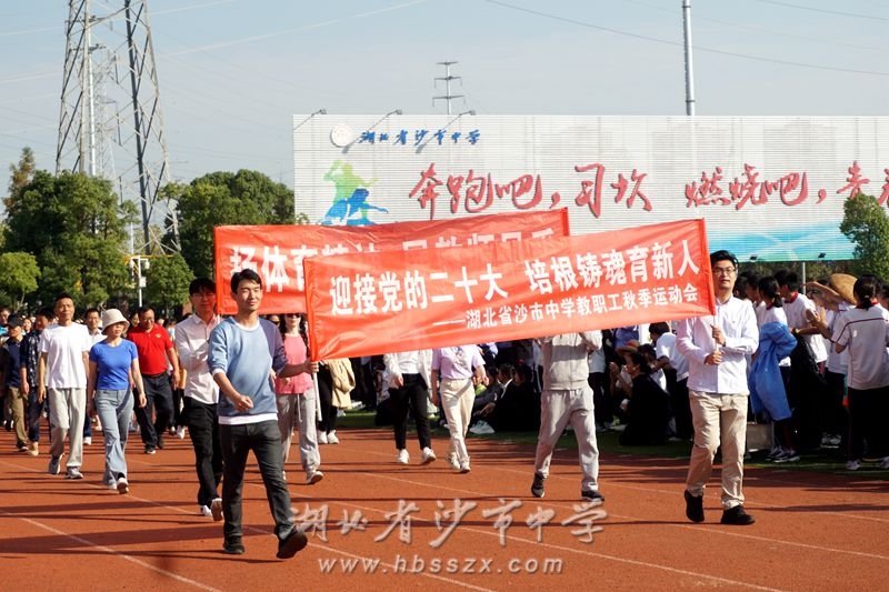 9月29日,在沙市中學第87屆田徑運動會上,沙市中學教工代表隊弘揚體育精神,一展教師風采。在學生完成入場式后,教工代表隊最后出場,他們以一曲《帶你一起舞起來》燃動整個校園。
