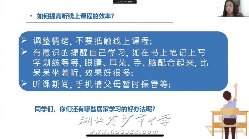 家長觀看 一場突如其來的疫情改變了我校學子的學習模式和生活節奏。在這段特殊的疫情防控期間,學生應當如何快速調整狀態?如何提高線上課程的學習效率?家長應該如何陪伴孩子度過?如何緩解和調節孩子以及自己的情緒?如何借助疫情給孩子上一堂生動的社會生活課,更好地促進孩子成長?針對疫情期間居家學習生活,湖北省沙市中學面向學生和家長組織開展了心理指導系列講座。