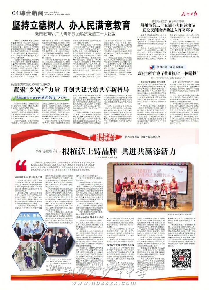 《荊州日報》2022年10月21日刊發我校青年教師學習黨的二十大報告感悟