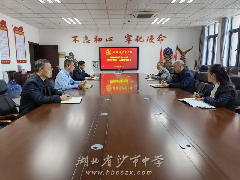 會議現場 為深入學習貫徹黨的二十大精神,切實推動黨的二十大精神在沙市中學落地生根、落實見效,11月10日,沙市中學黨委理論學習中心組專題學習黨的二十大精神。沙市中學黨委書記、校長熊禮才主持會議,校黨委理論學習中心組全體成員參加學習。校黨委理論中心組成員結合本職工作和學習體會作了交流發言。